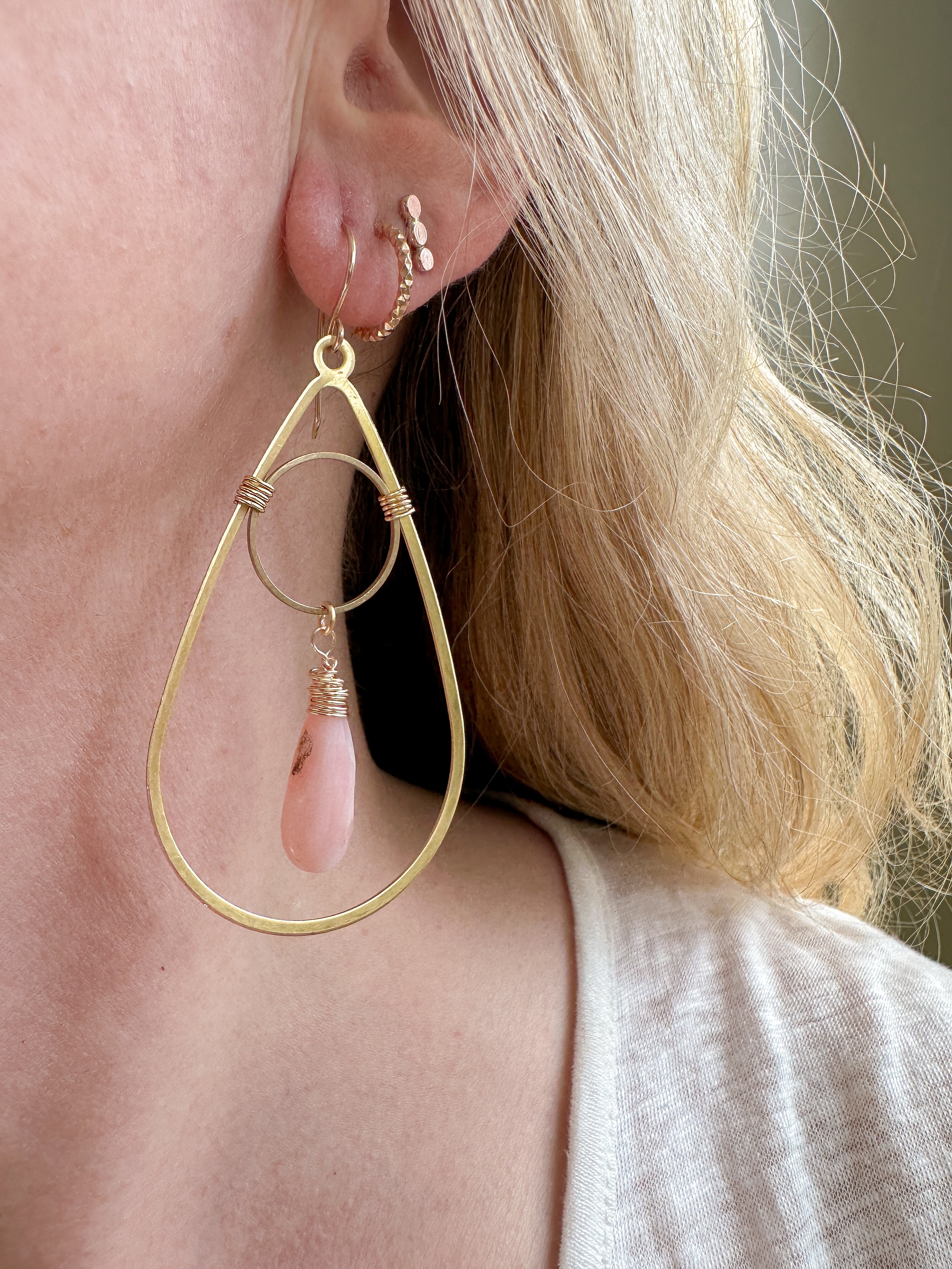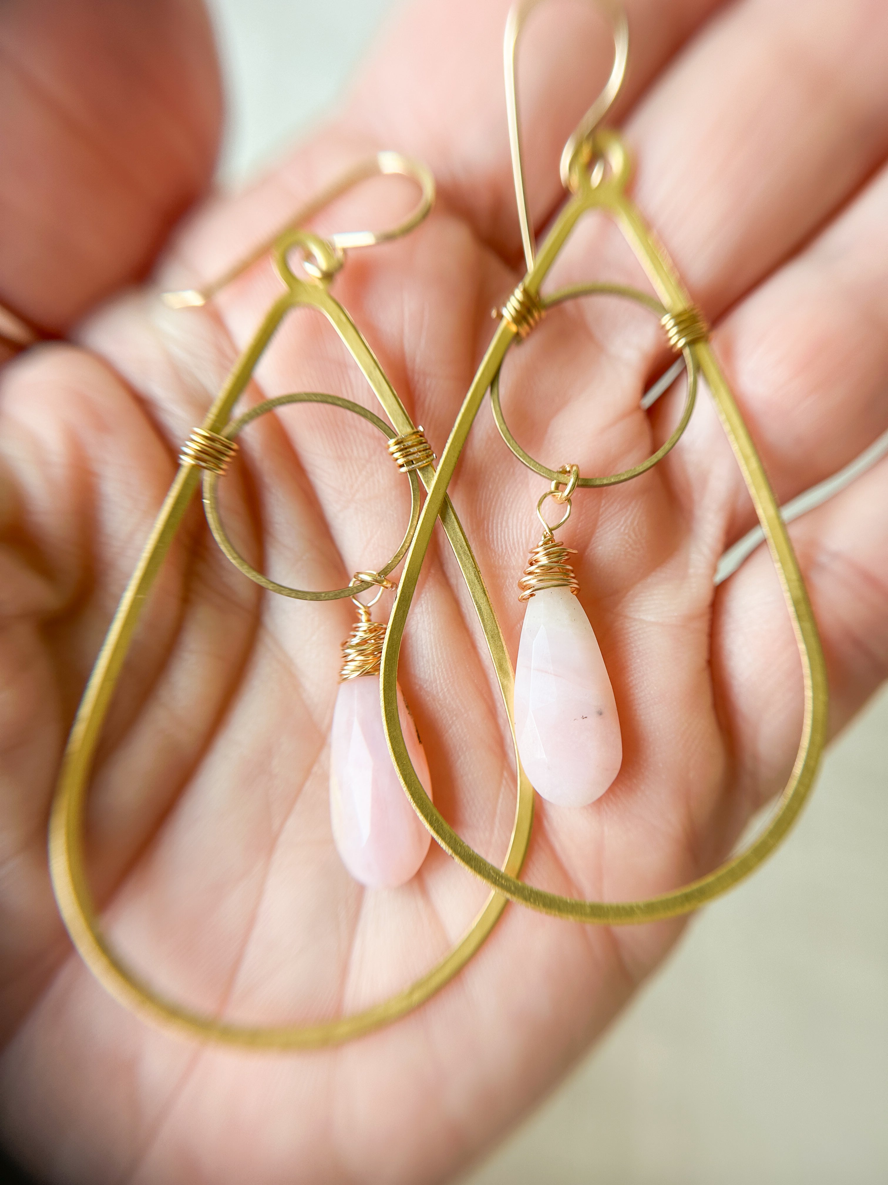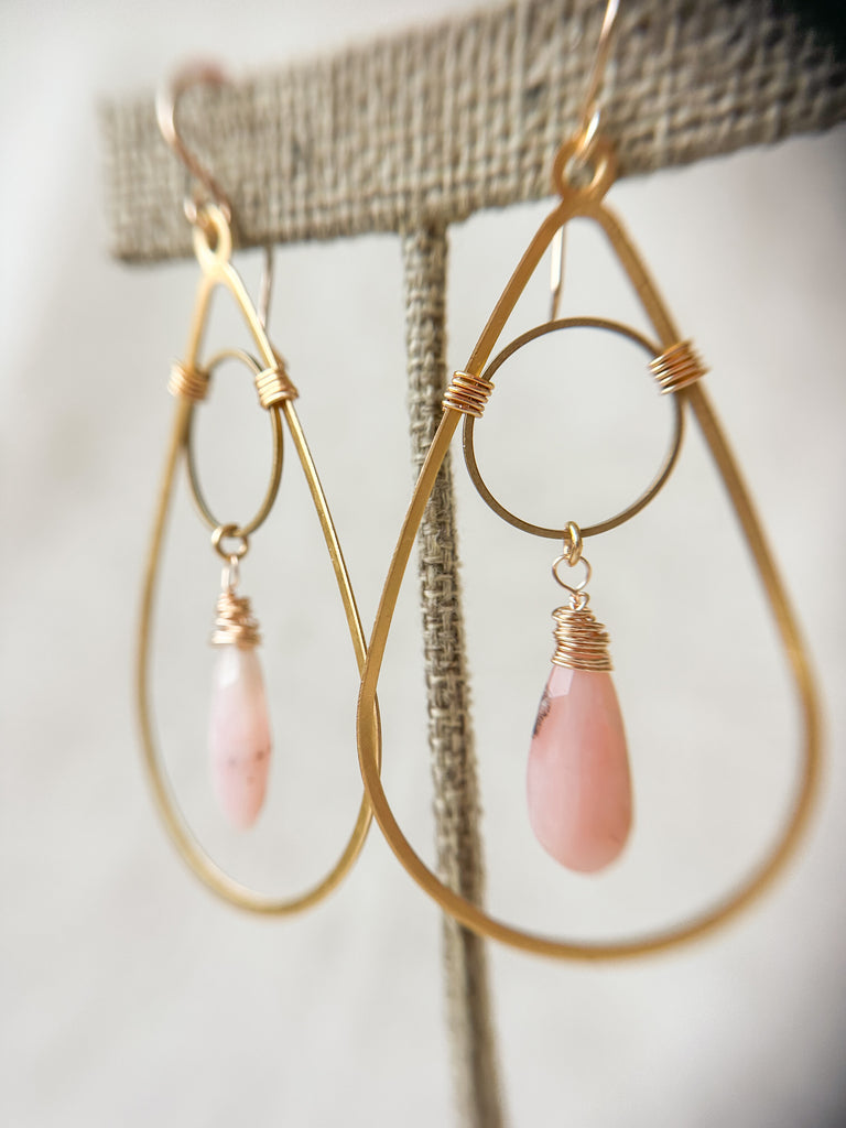 Simple and stunning chandelier earrings sparkle with a faceted Pink Opal. The ear wires are upgraded 14k Gold-Filled.