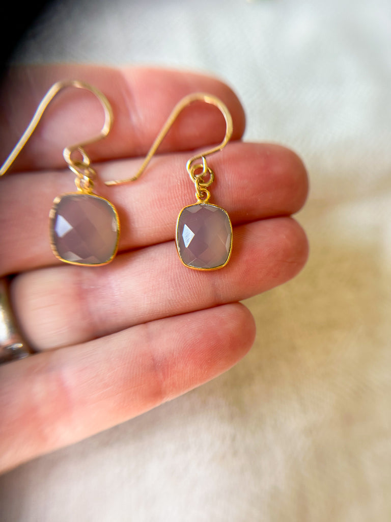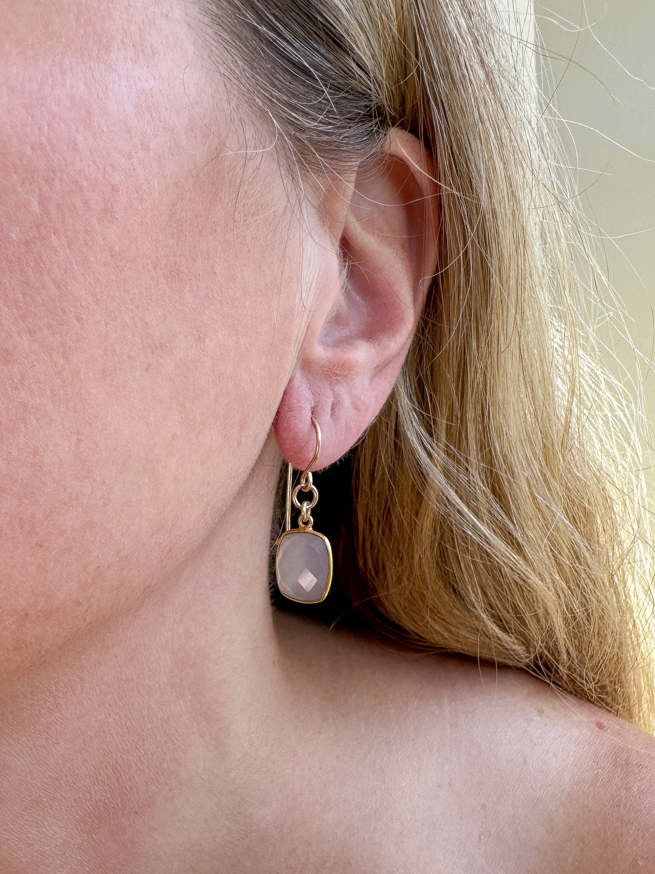 Introducing our 14k Gold Fill Faceted Smoky Chalcedony Octagon Drop Earrings - a perfect blend of modern minimalism and boholuxe elegance. Each earring showcases a faceted smoky chalcedony gemstone, unique in an octagon shape, expertly cut to catch the light and highlight the natural depth and allure of this mysterious stone. Suspended from delicate yet durable 14k gold fill ear wires, these earrings offer a refined look that’s both versatile and timeless.