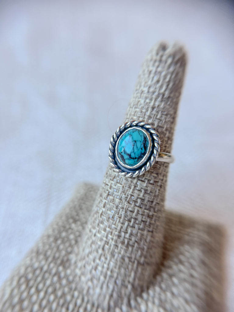 Hubei Turquoise Twist Silver Ring SZ 7.75