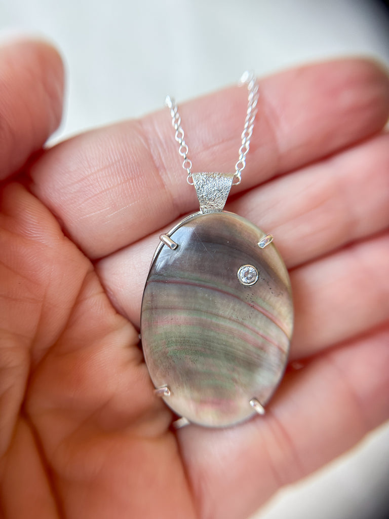 Round Chalcedony Opal & CZ Silver Ring SZ 7